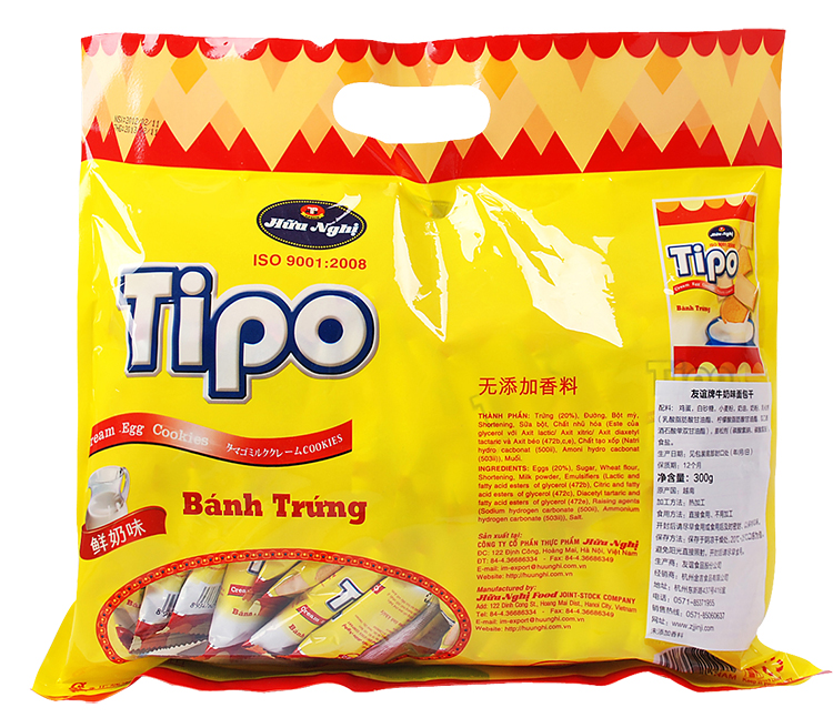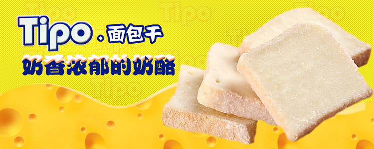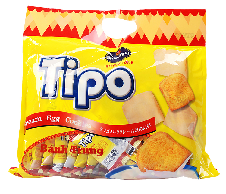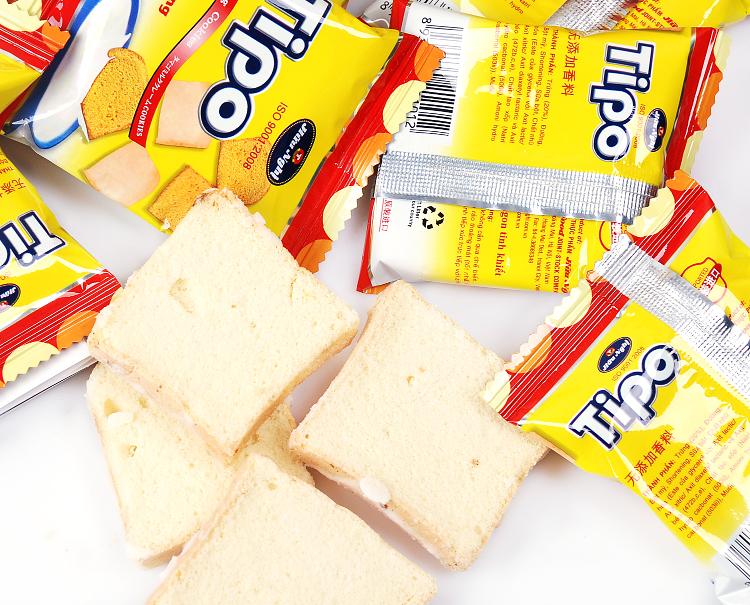 Tipo面包干2009年在越南上市,不久就悄然走红,细腻的白巧克力包裹香浓的鸡蛋面包干,先是巧克力香甜的味道接踵而至的是面包干的香酥口感,有点甜但是不腻人。