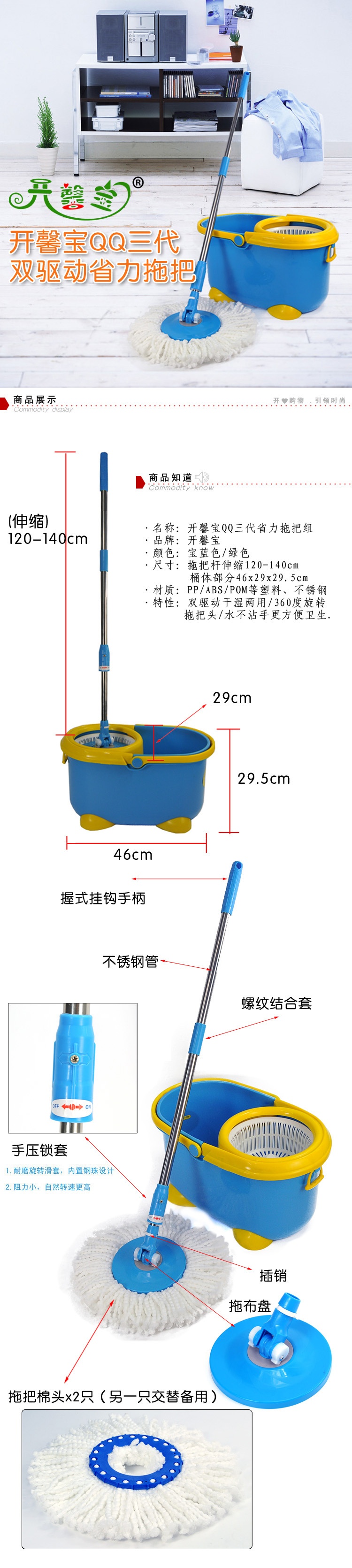 商品材质:拖把桶为优质塑料制成 杆为不锈钢材质